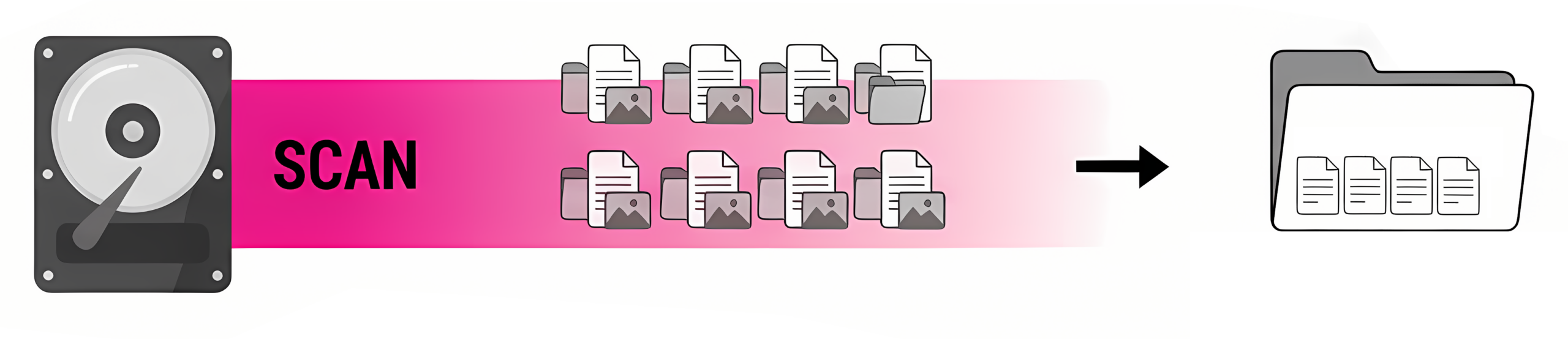 It scans a selected folder and all its subfolders by comparing file size and actual content (hash), ensuring accurate and reliable detection.